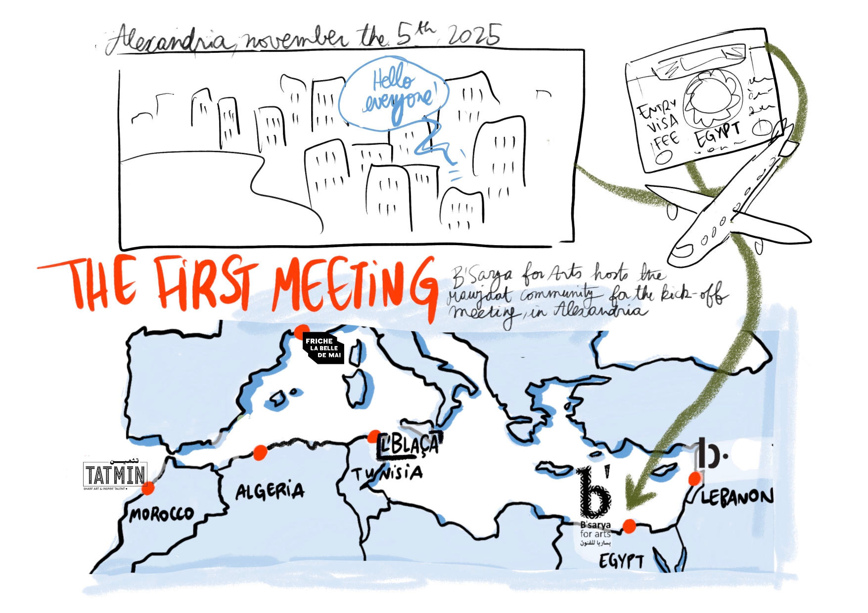 The Mawjaat project began with a first meeting in Alexandria in November 2025, bringing together partners from Algeria, Egypt, France, Lebanon, Morocco, and Tunisia. This first gathering laid the foundations for a cooperation centered on the sharing of practices, experimentation on transition issues, and the building of the collective dynamic.
